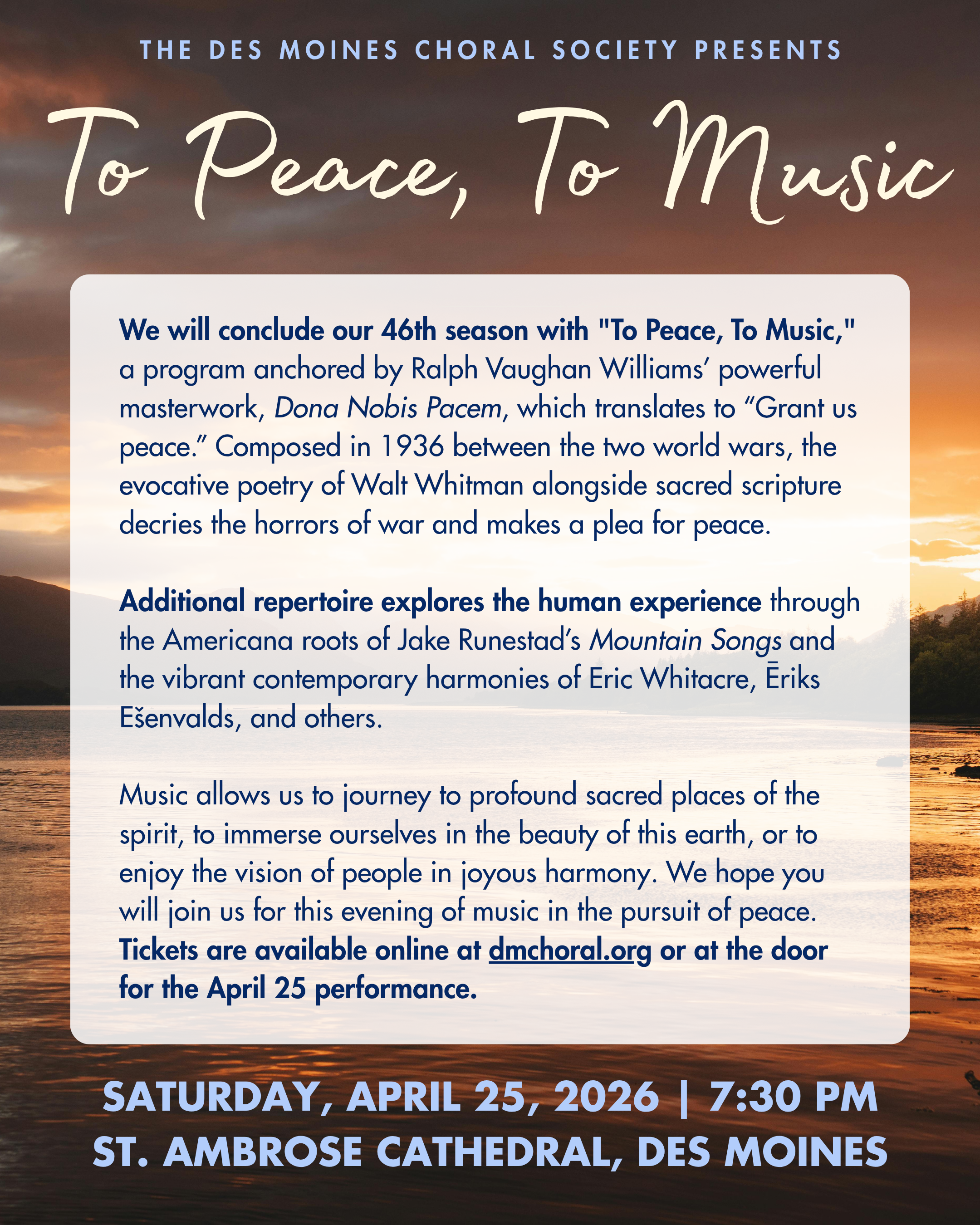 Join us for the final performance of our 46th season! We’ll see you at St. Ambrose on Saturday, April 25th.